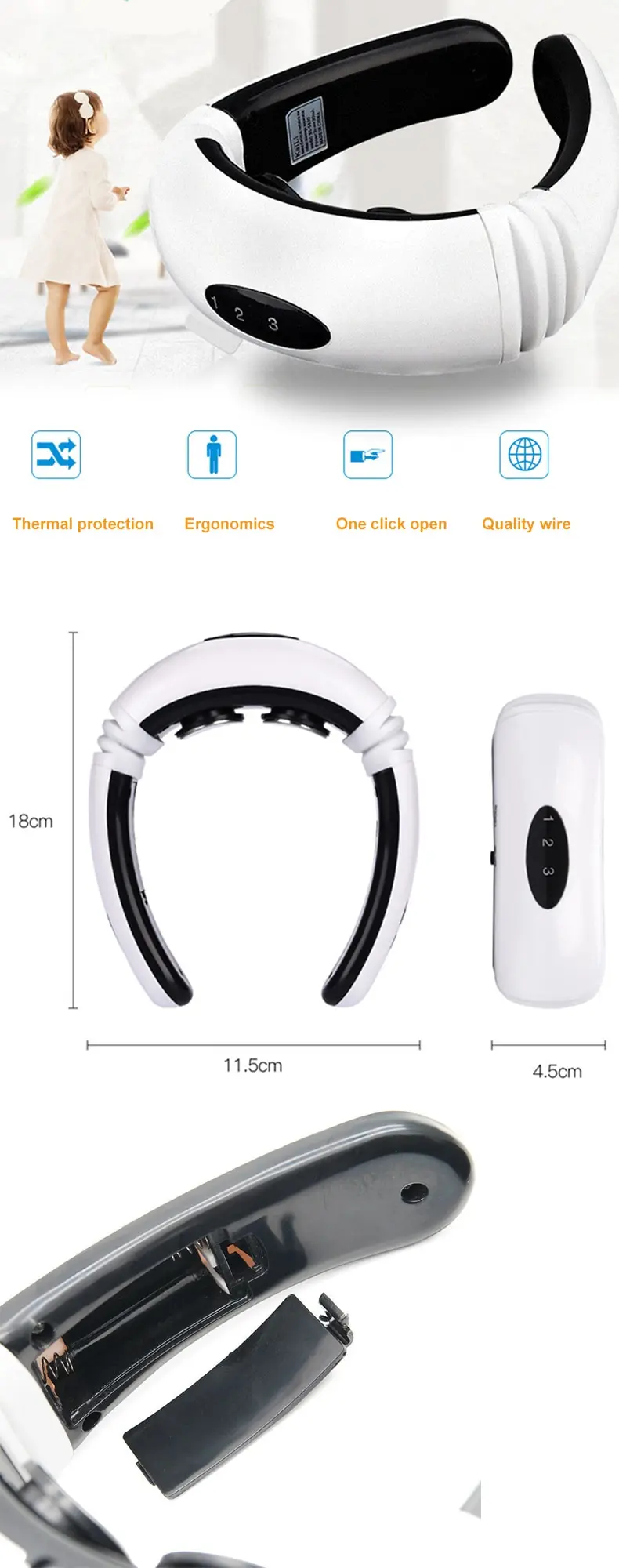 Electric Pulse Back and Neck Massager Far Infrared Heating Pain Relief Health Care Relaxation Tool