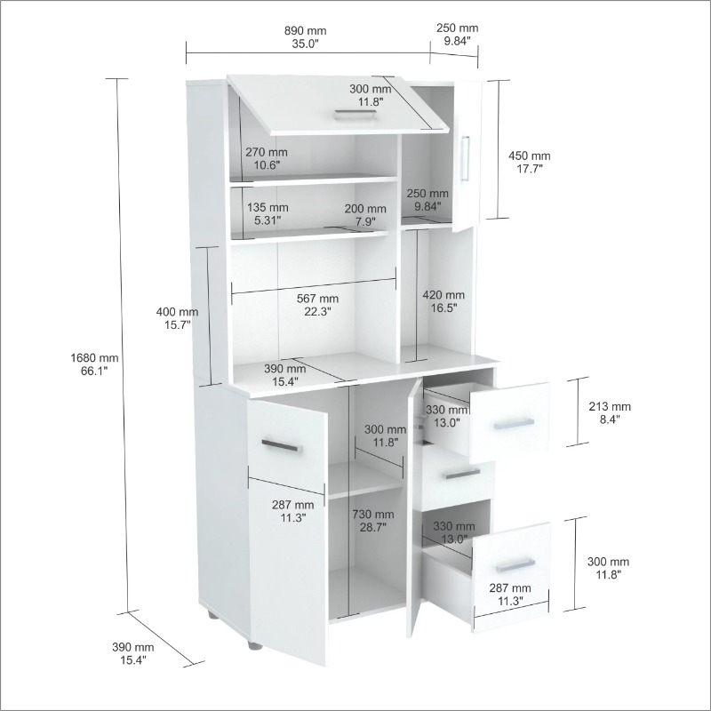 Inval Laminate Kitchen Microwave Storage Cabinet, White