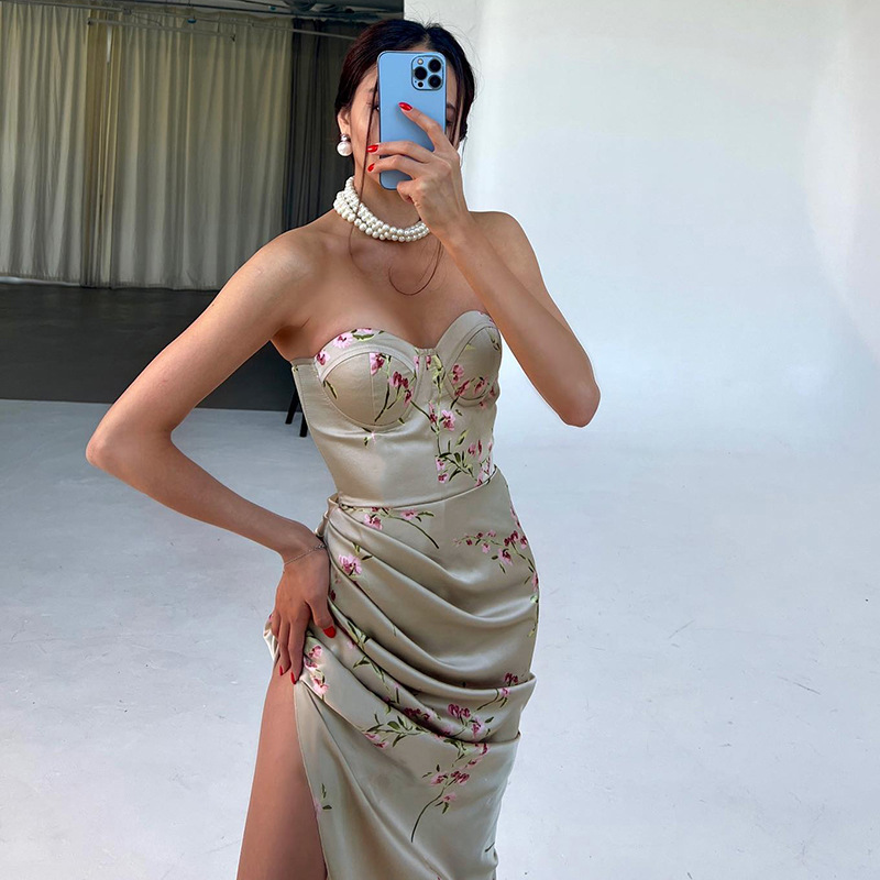 Sexy Tube Top Draped Split Long Dress