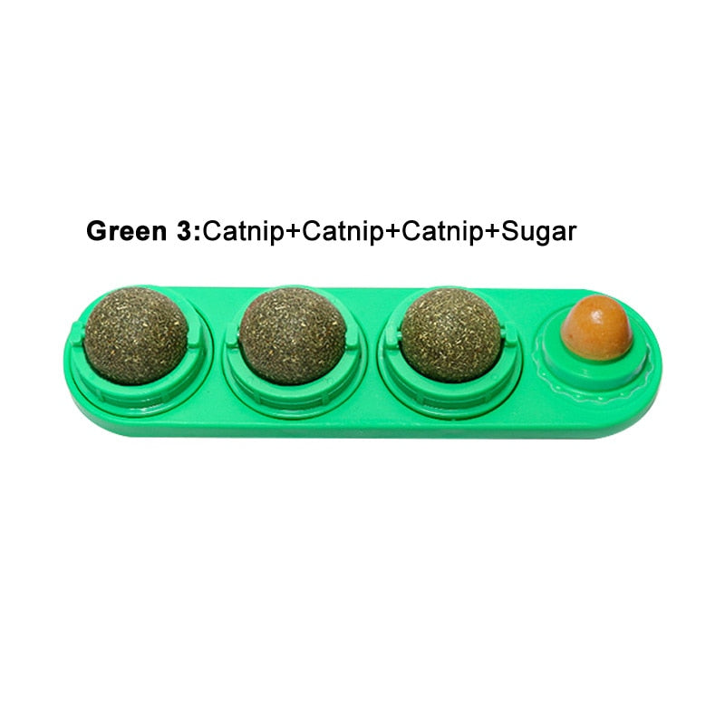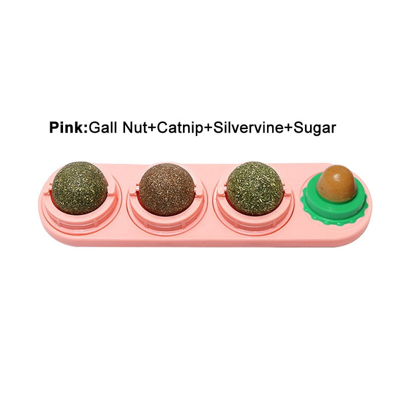 Cute Cat-pad Design: This cat toy can easily stick to the wall or other surfaces with strong viscous force, no falling off when your kitten licks and plays. The 3 balls are 360° rotatable when being licked.