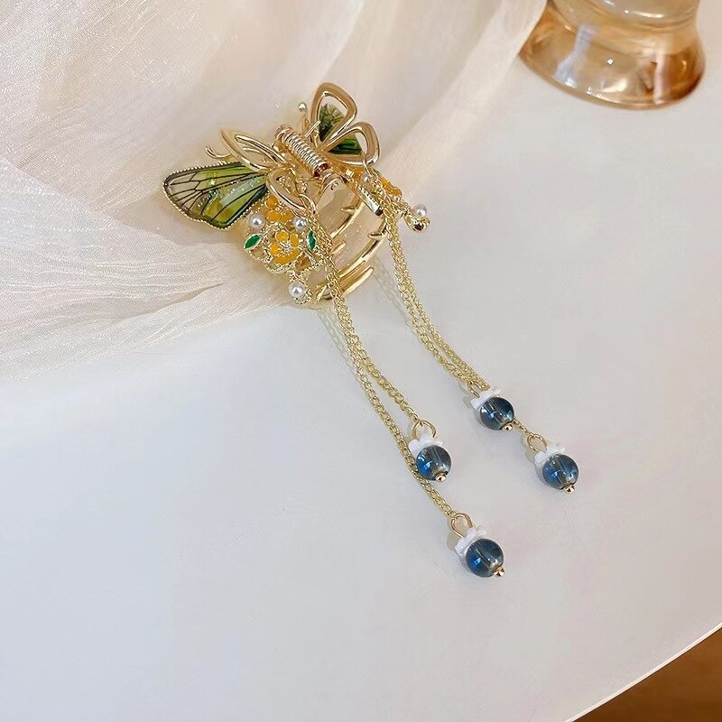 Women Butterfly Pearl Tassel hair clip