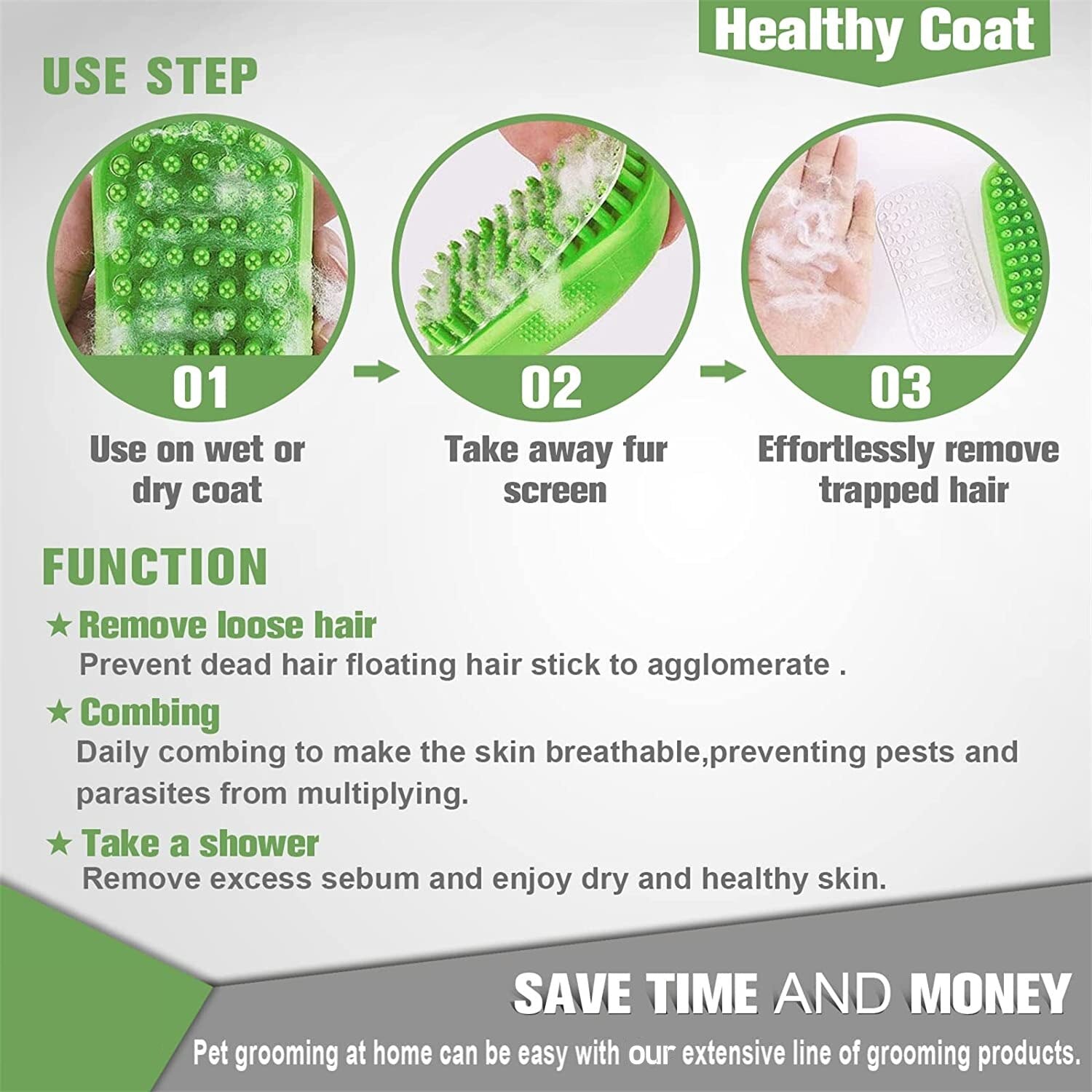 The bristles of the grooming brush are designed to effectively remove dirt, loose fur, and tangles from your dog's coat. They are often made from soft yet durable materials that are gentle on the skin, preventing any discomfort or irritation for your pet.